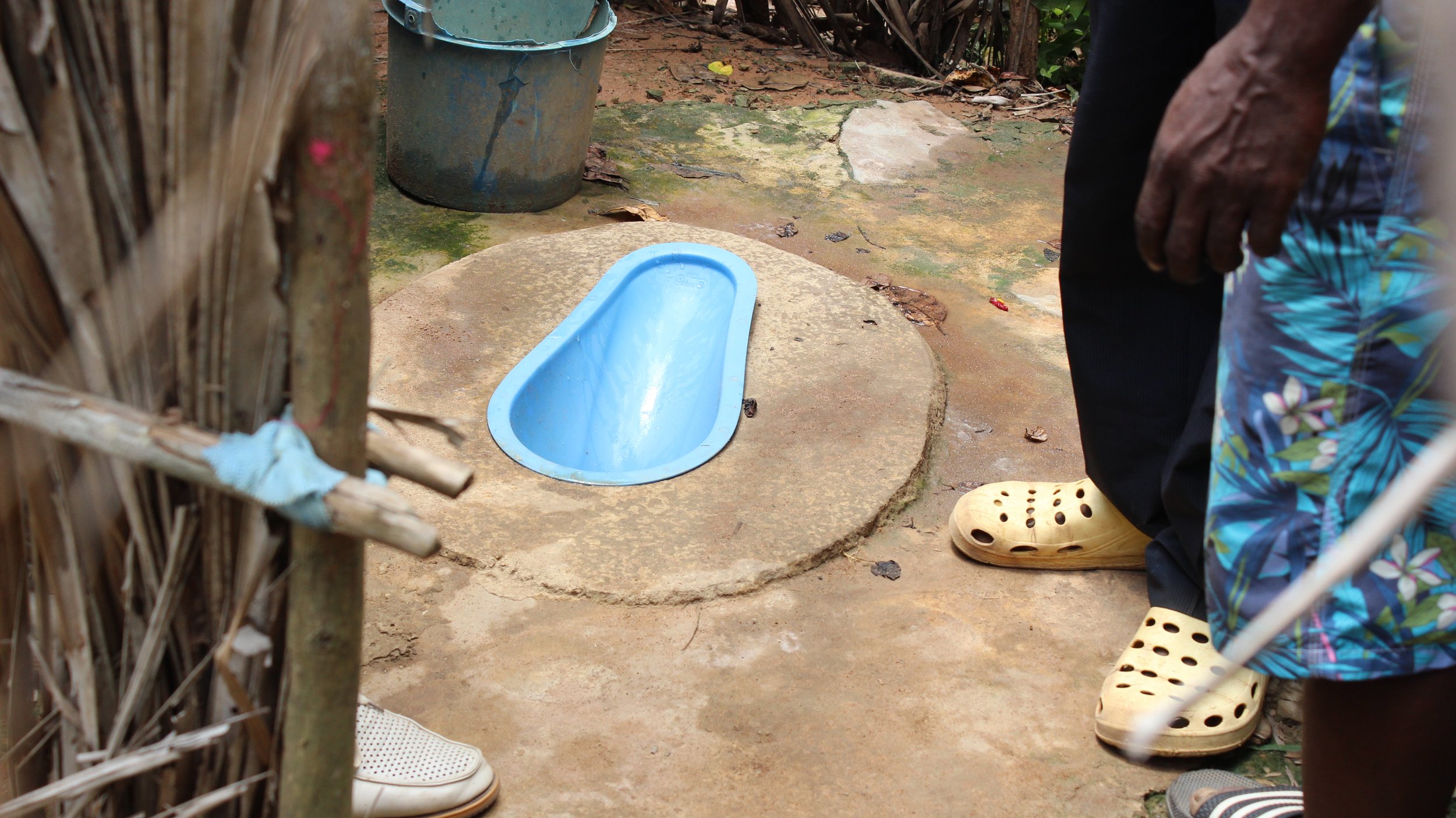 A SATO pan installed in an improved latrine.